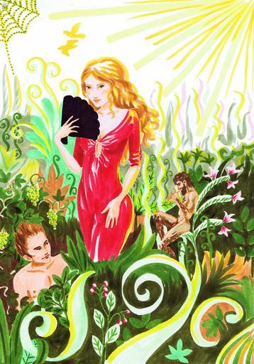 Keywords: woman flora drawing red dress plant subjects dream sun fantasy fantasy picture green colorful long hair art lady nature instinct human colour pencils flowers youth