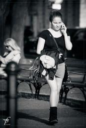 Keywords: woman girl phone talking city urban female walking cell phone downtown