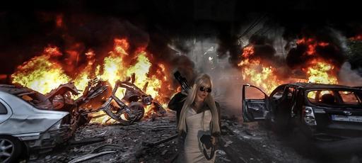 Keywords: woman girl photographer photoshop fire explosion tripod camera professional person caucasian