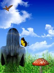 Keywords: woman girl supernatural mystic spirit paradise garden fairy mushroom sky clouds field grass summer fantasy