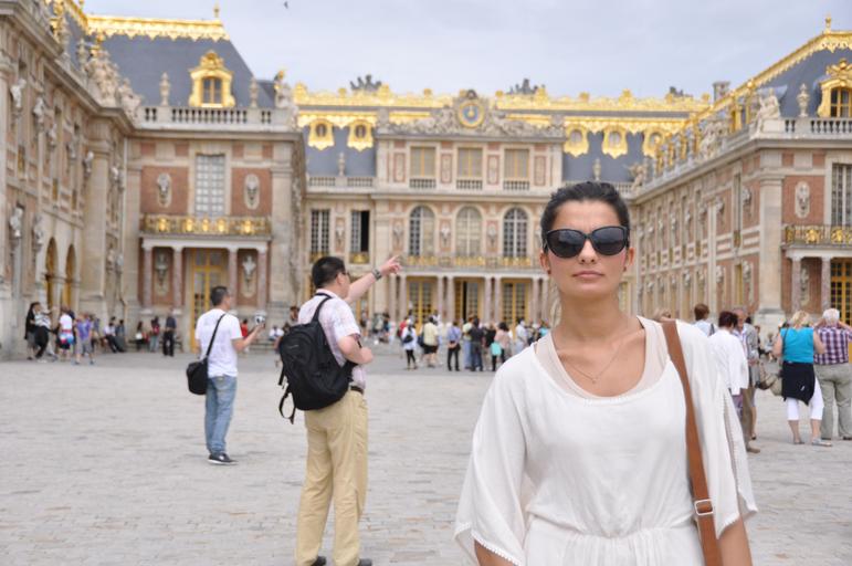 Keywords: woman glasses versailles france the palace monument architecture alleys courtyard history