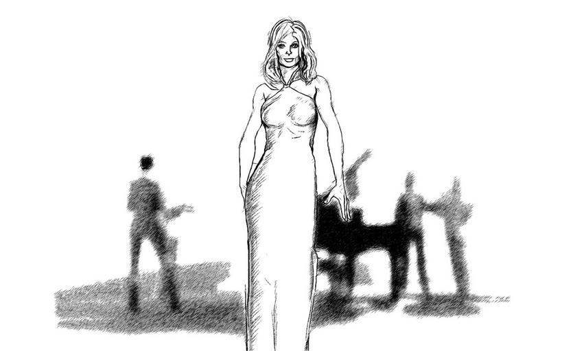 | Keywords: woman lady female sexy femininity erotic human beauty feminine dream pose sensual temptation drawing body view comic contrast black and white party society evening dress dress attitude beautiful seductive heiss fantasy foreground background date rendezvous |