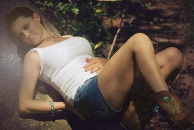 Keywords: woman laying tree nature portrait female outdoor beautiful relaxation woods cowboy boots shorts relax leisure