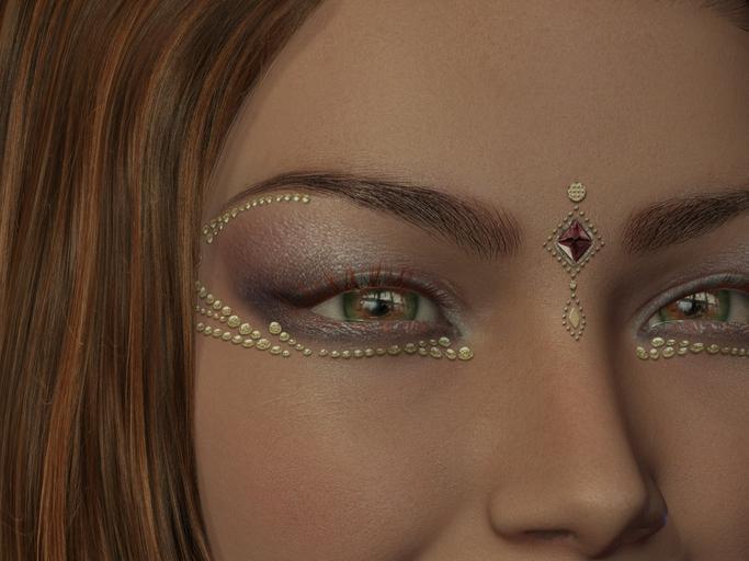 Keywords: woman make up head eye beauty face jewelry gold elegant photoshop melted