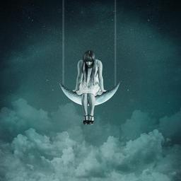 Keywords: woman moon night moonlight evening evening sky mood girl float rock art night sky star