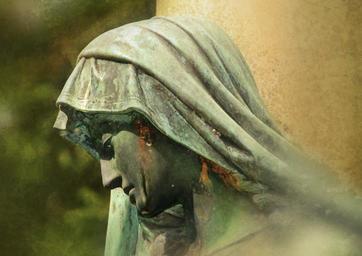 Keywords: woman portrait female face sculpture statue person mourning sadness lonely sad mystical atmosphere tomb cemetery silhouette romance mysterious