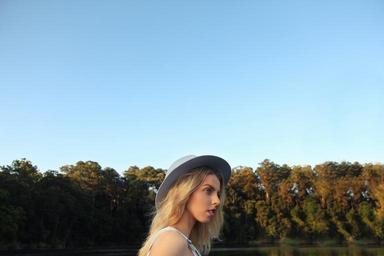 Keywords: woman profile face head female model portrait outdoors nature person adult blonde pretty attractive young youth hat