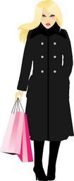 Keywords: girl woman lady female shopping shopping bags black coat clip-art illustration