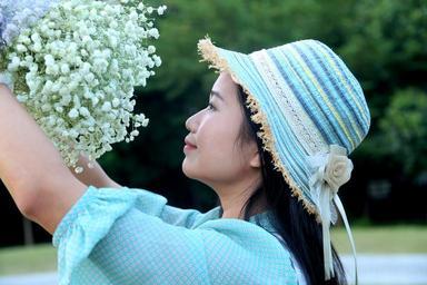 Keywords: woman shot from the side fresh gypsophila paniculata asia nature flower