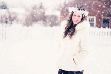 Keywords: woman snow winter portrait snowflakes smiling cold