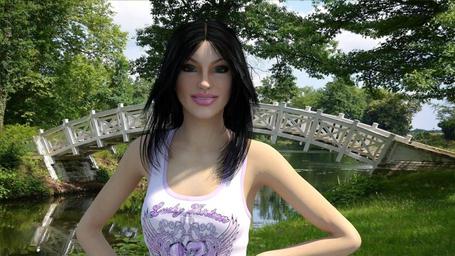 Keywords: woman sun bridge face merry pose sky head fig female sexy beautiful holiday