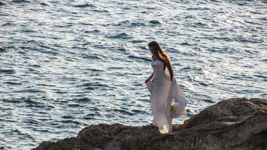 Keywords: woman sunset sea rock sun summer romantic cliff