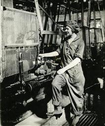 | Keywords: Woman turning shell in lathe.jpg Photograph en Sitting is impossible in this operation Note safety device protecting worker from belt of the machine Also note the workers uniform designed to protect her from loose ends of machine<br> Women in Industry Service 1 photo Institution National Archives and Records Administration circa 1940s accession number 86-G-8A-1 National Archives and Records Administration <gallery> File 86-G-8A-1 tif tif </gallery> PD-USGov PD-USGov-DOL NARA-cooperation Women at work in the United States Detroit Lathe operators People of Michigan A Detroit in the 1940s NARA images of Michigan A Black and white photographs of Michigan A Uploaded with UploadWizard Files from NARA ExtravaSCANza |