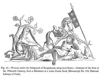 | Keywords: Woman under the Safeguard of Knighthood allegorical Scene Costume of the End of the Fifteenth Century from a Miniature in a Latin Psalm Book Manuscript No 175 National Library of Paris.png Woman under the Safeguard of Knight hood allegorical Scene --Costume of the End of the Fifteenth Century from a Miniature in a Latin Psalm Book Manuscript No 175 National Library of Paris Project Gutenberg text 10940 copied from En wikipedia PD-old en Pwqn 10 December 2004 original upload log <nowiki> del cur 19 10 10 December 2004 Pwqn Talk contribs 1438×1090 50 425 bytes Woman under the Safeguard of Knighthood allegorical Scene --Costume of the End of the Fifteenth Century from a Miniature in a Latin Psalm Book Manuscript No 175 National Library of Paris PD Project Gutenberg text 10940 </nowiki> Allegories Couples in art Medieval women Illuminated manuscripts in the Bibliothèque nationale de France Medieval miniatures of knights Medieval miniatures of casual life Psalters |
