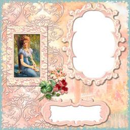 Keywords: woman vintage scrapbook scrapbooking album page frames geraniums flower floral bouquet victorian design swirls spring pattern background pastel feminine transparency
