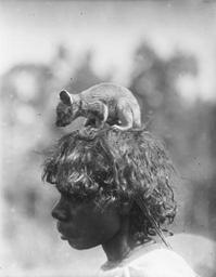 | Keywords: Woman with a pet possum on her head - NMA-11728.jpg en This is a Pongaponga woman from western Arnhem land She carries suspended from her head a basket or bag for holding the food she has gathered And she has a pet ring-tailed possum which she carries on her head while out searching for food Various animals including birds may be kept as pets Often they are young animals brought to the camp by returning hunters 1922 http //www nma gov au/collections-search/display app tlf irn 11728 National Museum of Australia Institution National Museum of Australia Creator Herbert Basedow photo PD-Australia Photographs by Herbert Basedow Photographs in the National Museum of Australia Unidentified people of Australia Aboriginal Australians Pets in Australia |