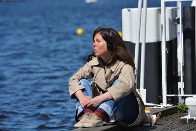 Keywords: woman young break alster hamburg coffee music wait
