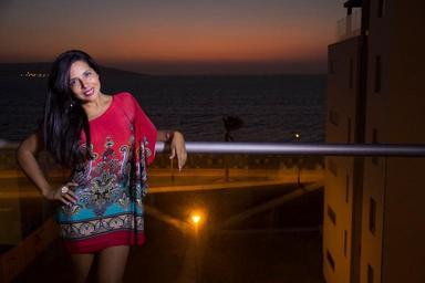 Keywords: women latin peruvian red dress mini dress beach at night ocean view