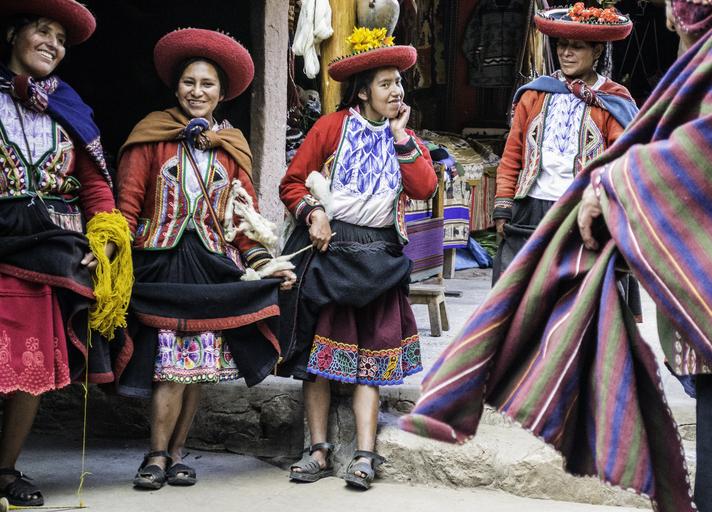 Keywords: women person people unmarried weavers collective peruvian curtsy