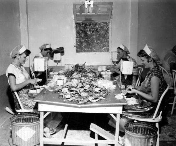 Keywords: florida cedar key cedarkey women crab picking crabpicking seafood industry seafoodindustry seafood crab meat crabmeat crab pickers crabpickers shellfish seafood packers seafoodpackers blackandwhite monochrome indoor black and white Persistent URL: floridamemory.com/items/show/256005 Local call number: C023472 Title: Women picking crabs in Cedar Key Date: July 1956 Physical descrip: 1 photoprint - b&w - 4 x 5 in. Series Title: Department of Commerce Collection Repository: State Library and Archives of Florida 500 S. Bronough St., Tallahassee, FL, 32399-0250 USA, Contact: 850.245.6700, Archives@dos.myflorida.com Persistent URL: floridamemory.com/items/show/256005 Local call number: C023472 Title: Women picking crabs in Cedar Key Date: July 1956 Physical descrip: 1 photoprint - b&w - 4 x 5 in. Series Title: Department of Commerce Collection Repository: State Library and Archives of Florida 500 S. Bronough St., Tallahassee, FL, 32399-0250 USA, Contact: 850.245.6700, Archives@dos.myflorida.com |