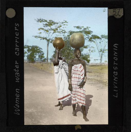 Keywords: "Women Water Carriers, Livingstonia", Malawi, ca.1910 (imp-cswc-GB-237-CSWC47-LS4-1-057).jpg en <br> Women Water Carriers Livingstonia Malawi ca 1910 Photograph of two African women possibly of the Ngoni people carrying water pots on their heads The women are pictured walking on a dirt road and there are trees in the background ; This belongs to a series of Church of Scotland Foreign Missions Committee lantern slides relating to Rev Donald Fraser 1870-1933 Rev Donald Fraser the Scottish missionary was born in Argyllshire Scotland the son of a Free Church minister In his youth Rev Fraser helped found the Student Volunteer Movement in Britain and the World Student Christian Federation before beginning missionary service in Malawi with the Free Church of Scotland He worked in Malawi from 1896 until he returned to Scotland in 1925 He was first posted to Ekwendeni and later Embangweni Rev Fraser worked closely with the Ngoni people Photographer Unknown Filename imp-cswc-GB-237-CSWC47-LS4-1-057 tif Coverage date circa 1910 Part of collection International Mission Photography Archive ca 1860-ca 1960 Type images Part of subcollection Photographs from the Centre for the Study of World Christianity University of Edinburgh U K ca 1900-ca 1940s Repository name Centre for the Study of World Christianity Archival file impaunpub_Volume7/1506 url Repository address The University of Edinburgh School of Divinity New College Mound Place Edinburgh EH1 2LX United Kingdom Geographic subject country Malawi Format aacr2 1 lantern slide 8 x 8 cm Geographic subject continent Africa Rights Contact the repository for details Part of series Donald Fraser of Loudon LS4/1 Repository email divinity-CSWC ed ac uk Subject lcsh Keyword Women; Manual work Date created circa 1910 Publisher of the digital version University of Southern California Libraries Subject aat genre portraits Format aat lantern slides Legacy record ID impa-m68555 Access conditions http //www ed ac uk/schools-departments/divinity/research/centres/world-christianity/collections-resources File GB 237 CSWC47/LS4/1/57 1910 author http //digitallibrary usc edu/cdm/ref/collection/p15799coll123/id/64627 PD-old-70-1923 Magic lantern images Images from USC Digital Library uploaded by Fæ International Mission Photography Archive ca 1860-ca 1960 Headcarrying in Malawi 1910 in Africa People of Malawi |