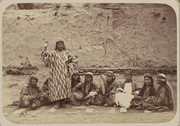 | Keywords: Women's Customs among the Tajiks. Social Gathering of a Group of Young Women, Two of Whom Have Musical Instruments WDL11184.png Artwork ru Кун Александ Людвигович 1840 1888 гг fr Kun Aleksandr L 1840-1888 en Kun Aleksandr L 1840-1888 zh 亚历山大·L· ,1840-1888 年 pt Kun Aleksandr L 1840-1888 ar كُن، ألكسندر ل ، 1840-1888 es Kun Aleksandr L 1840-1888 ru Обычаи таджикских женщин Развлечение молодых женщин две из кото ых де жат музыкальные инст ументы fr Coutumes des femmes tadjikes Rencontre sociale d'un groupe de jeunes femmes dont deux tiennent des instruments de musique en Women's Customs among the Tajiks Social Gathering of a Group of Young Women Two of Whom Have Musical Instruments zh 塔吉克妇女的习俗 群年轻女 的社交聚会,其中两人拿 乐器 pt Costumes das mulheres entre os tajiques Encontro social de um grupo de mulheres jovens duas das quais com instrumentos musicais ar عادات النساء بين الطاجيكيين تجمع اجتماعي لمجموعة من الشابات، اثنتان منهن تحملان آلات موسيقية ru Эта фотог афия входит в этног афическую часть <em> Ту кестанского альбома </em><em></em> всесто оннего исследования Цент альной Азии п едп инятого после того как в 1860-х годах в егионе установилось господство Российской импе ии Альбом созданный по аспо яжению гене ала Константина Пет овича фон Кауфмана 1818 1882 годы пе вого гене ал-губе нато а оссийского Ту кестана состоит из четы ех частей в шести томах «Часть а хеологическая» два тома «Часть этног афическая» два тома «Часть п омысловая» один том и «Часть исто ическая» один том Основным составителем альбома был оссийский востоковед Александ Людвигович Кун аботавший совместно с иколаем Венедиктовичем Богаевским В альбоме п едставлено около 1200 фотог афий а также а хитекту ные планы аква ельные исунки и ка ты «Часть этног афическая» включает в себя 491отдельную фотог афию на 163 листах а фотог афиях изоб ажены п едставители азличных на одов егиона листы 1 33 повседневная жизнь и итуалы листы 34 91 а также виды де евень и го одов уличные то говцы и комме ческая деятельность листы 92 163 <br>Ба абаны; Этног афические фотог афии; Г упповые по т еты; авы и обычаи; узыкальные инст ументы; Фотог афические исследования; По т етные фотог афии; Таджики fr Cette photographie est extraite de la partie ethnographique de l'<em>Album du Turkestan</em> étude visuelle complète de l'Asie centrale entreprise après que l'Empire russe prit le contrôle de la région dans les années 1860 Commandé par le général Konstantin Petrovich von Kaufman 1818 1882 premier gouverneur général du Turkestan russe l'album est composé de six volumes en quatre parties la partie archéologique deux volumes la partie ethnologique deux volumes la partie sur les métiers un volume et la partie historique un volume L'album fut essentiellement compilé par l'orientaliste russe Aleksandr L Kun assisté de Nikolai V Bogaevskii Il comporte près de 1200 photographies et inclut également des plans architecturaux des dessins à l'aquarelle et des cartes La partie ethnographique compte 491 photographies sur 163 planches montrant des individus des différentes peuplades de la région planches 1 à 33 des scènes de la vie quotidienne et des rites planches 34 à 91 ainsi que des vues de villages et de villes de vendeurs ambulants et d'activités commerciales planches 92 à 163 <br>Tambours; Photographies ethnographiques; Portraits de groupe; Mœurs et coutumes; Instruments de musique; Inventaires photographiques; Portraits photographiques; Tadjiks en This photograph is from the ethnographical part of <em>Turkestan Album</em><em> </em>a comprehensive visual survey of Central Asia undertaken after imperial Russia assumed control of the region in the 1860s Commissioned by General Konstantin Petrovich von Kaufman 1818 82 the first governor-general of Russian Turkestan the album is in four parts spanning six volumes Archaeological Part two volumes ; Ethnographic Part two volumes ; Trades Part one volume ; and Historical Part one volume The principal compiler was Russian Orientalist Aleksandr L Kun who was assisted by Nikolai V Bogaevskii The album contains some 1 200 photographs along with architectural plans watercolor drawings and maps The Ethnographic Part includes 491 individual photographs on 163 plates The photographs show individuals representing the different peoples of the region Plates 1 33 ; daily life and rituals Plates 34 91 ; and views of villages and cities street vendors and commercial activities Plates 92 163 <br>Drums; Ethnographic photographs; Group portraits; Manners and customs; Musical instruments; Photographic surveys; Portrait photographs; Tajiks zh 这张照片出自<em> 其斯 相册 </em>的民族部分,该相册是俄罗斯 国 19 世纪 60 年代取得中亚控制 后, 手制 的 部针对该 区的综合 图像调查记录 