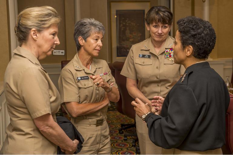 | Keywords: Women's Symposium 140613-N-CE241-021.jpg en Vice Adm Robin R Braun Chief of Navy Reserve left Vice Adm Nanette M DeRenzi Judge Advocate General of the Navy left-center Vice Adm Jan E Tighe Commander U S Fleet Cyber Command right-center and Vice Adm Michelle J Howard Deputy CNO for Operations Plans and Strategy hold a discussion during the Sea Service Leadership Association's 27th annual Joint Women's Leadership Symposium This year's theme Why Do You Serve offered opportunities for personal and professional development with a focus on the issues of retention professional growth and reasons behind why women continue to serve in the military U S Navy Photo by Mass Communication Specialist 3rd Class Laura Hoover/Released 2014-06-13 Seaman Laura Hoover https //www dvidshub net/image/1401472 140613-N-CE241-021 2014-06-16 17 41 NAVAL STATION NORFOLK VA US PD-USGov-Military-Navy Naval Station Norfolk Images from DoD uploaded by Fæ Robin Braun Nanette M DeRenzi Jan E Tighe Michelle J Howard |