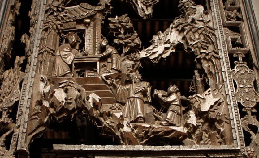 Keywords: Wood carvings on screen doors (close up).jpg en Wood carvings on screen doors close up own Zyng1 Chen Clan Ancestral Hall
