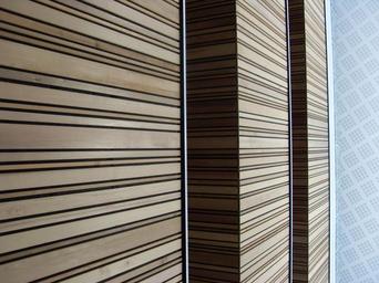 Keywords: wood lines three sections pattern texture grain architecture education building wall modern