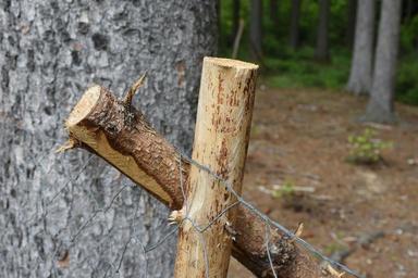 Keywords: wood tree stempen fence wire mesh fixing demarcation limit nature landscape forest coniferous forest