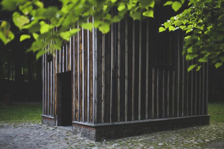Keywords: wood wooden building forest brownish dark alone
