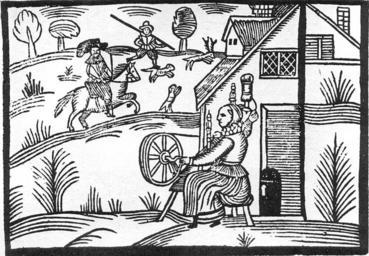 | Keywords: Woodcut Woman Spinning.jpg Woodcut with woman spinning Scanned from Horizon Book of the Elizabethan World by Lacey Baldwin Smith New York American Heritage Publishing 1967 early 17th century author PD-old 17th-century woodcuts Spinning in art |