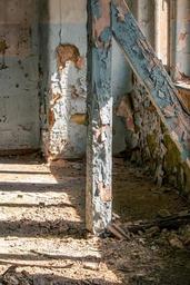 Keywords: wooden beams entablature space weathered paint architecture old building old historically leave lapsed building lost place weird dilapidated past broken decay transience ailing run down atmosphere masonry passed break up