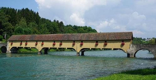 Keywords: wooden bridge customs bridge covered wooden bridge switzerland germany germany-switzerland rheinau-altenburg d-ch ch-d saddle roof beaver-tail bricks rhine switzerland