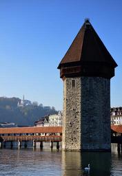 Keywords: wooden bridge water castle heaven tower architecture monument building history switzerland