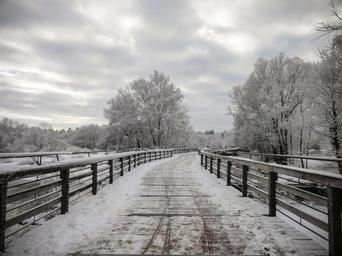 Keywords: wooden bridge winter snow wintry nature mood light cold snowy white winter mood icy