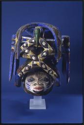 | Keywords: Wooden ceremonial headdress - NARA - 192415.tif Scope and content This wooden carving is a ceremonial headdress made to be worn by the principal performer in an Efe/ Gelede ritual The artist is Etobe of Ketu in the Republic of Benin The lower part is a face with a complex headdress structure topped with two birds facing front and back each with a diamond-patterned snake in its beak Four sheathed knives elaborately patterned hang from the encircling band The mask was a gift to Lyndon B Johnson from His Excellency Leopold Sedar Senghor President of Senegal General notes The headdress measures 15 1/2 x 14 x 15 1/4 192415 Local identifier National Archives and Records Administration Office of Presidential Libraries Lyndon B Johnson Library and Museum 04/01/1985 - Lyndon Baines Johnson Library NLLBJ 2313 Red River Street Austin TX 78705-5702 1966-09-28 Record group Collection LBJ-MCOLL Lyndon B Johnson Museum Collection 11/22/1963 - 07/09/1998 Record group ARC 1151 Artifacts Relating to the Life and Presidency of Lyndon B Johnson compiled 11/22/1963 - 07/09/1998 Series ARC 192413 File unit File unit ARC Variant control numbers NAIL Control Number NLJ-MCOLL-A-M02<br /> Other Identifier 66 40 3 yes Other versions NARA-cooperation PD-USGov Art of Benin Yoruba Gelede masks Lyndon Baines Johnson Library and Museum |