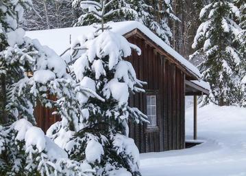Keywords: wooden hut cabin winter snow cold season trees snow covered nature landscape scenery forest weather
