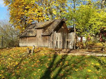 Keywords: wooden hut woods forest autumn outdoors lifestyle