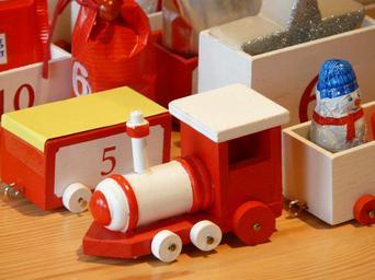 Keywords: wooden train toys advent calendar train gifts nicholas wagons packed surprise advent