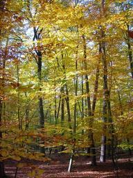 Keywords: wooden wall forest golden october autumn bright yellow deciduous forest