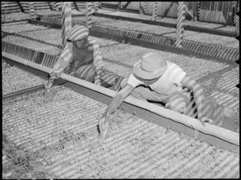 | Keywords: Woodland, California. Departure of evacuees of Japanese ancestry by special train for Merced Assemb . . . - NARA - 537815.jpg Scope and content The full caption for this photograph reads Woodland California Departure of evacuees of Japanese ancestry by special train for Merced Assembly center 125 miles away They have come in from their farms early this morning and are here being checked into their designated coaches by social worker on Wartime Civil Control Administration staff General notes The original caption does not match the image Photograph of two men gardening in a greenhouse 537815 Local identifier 210-G-C502A Department of the Interior War Relocation Authority 02/16/1944 - 06/30/1946 NARA-Author Lange Dorothea 1895-1965 Photographer 1372774 <br /> Still Picture Records Section Special Media Archives Services Division NWCS-S National Archives at College Park 8601 Adelphi Road College Park MD 20740-6001 1942-05-20 Record group Record Group 210 Records of the War Relocation Authority 1941 - 1989 Record group ARC 537 Central Photographic File of the War Relocation Authority compiled 1942 - 1945 Series ARC 536000 File unit File unit ARC Variant control numbers NAIL Control Number NWDNS-210-G-C502A Other versions <gallery> File Woodland _California _Departure_of_evacuees_of_Japanese_ancestry_by_special_train_for_Merced_Assemb_ _ _ _-_NARA_-_537815 tif tif File Woodland _California _Departure_of_evacuees_of_Japanese_ancestry_by_special_train_for_Merced_Assemb_ _ _ _-_NARA_-_537815 jpg jpg </gallery> NARA-cooperation PD-USGov Japanese American internment processing in Woodland California Dorothea Lange |