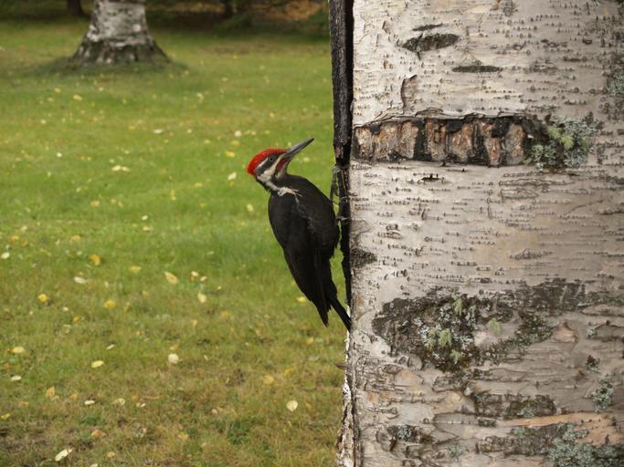 Keywords: woodpecker bird picking tree feathered forest animal nature birch