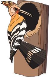 Keywords: woodpecker bird sitting tree wooden brown trunk hole house home nest carved wildlife stripes white black yellow feathers wings