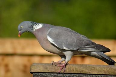 Keywords: woodpigeon pigeon side view perched garden close-up columba palumbus wild bird