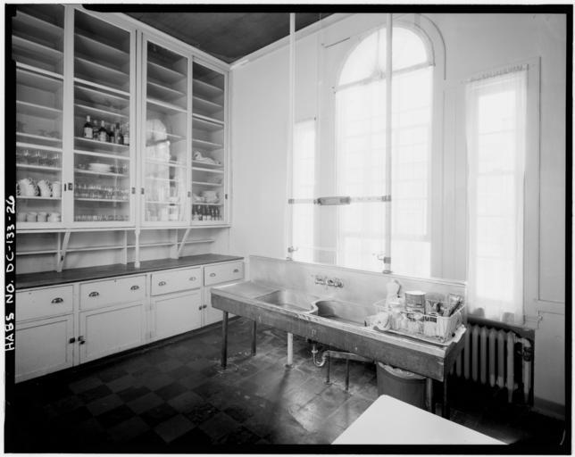 | Keywords: Woodrow Wilson House-Serving Kitchen.jpg en DC-133-26 SERVING KITCHEN SECOND FLOOR SHOWING GLASS FRONTED CHINA CABINETS AND MONEL METAL SINK Woodrow Wilson House aka Henry Parker Fairbanks House Kalorama Neighborhood 2340 South S Street Northwest Washington District of Columbia DC Historic American Buildings Survey Jack E Boucher 1964-06 PD-USGov-Interior-HABS Woodrow Wilson House Historic American Buildings Survey Monel Historical kitchens in the United States Kitchen cabinets | ||||