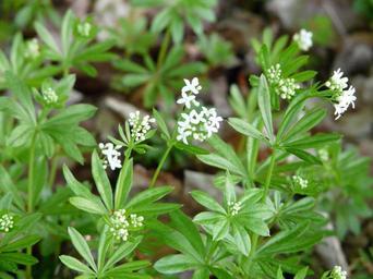 Keywords: woodruff blossom bloom white leaf stalk green galium odoratum forest plant galium deciduous forest coumarin medicinal plant tasty plant