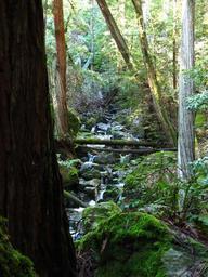 Keywords: woods california stream creek green forest moss rocks cascade nature tree outdoors redwood wilderness plant trunk