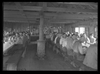 | Keywords: group portrait groupportrait palmer lumber mill lumbermill logging forestry dining room diningroom botany expedition botanyexpedition tree portraits treeportraits huron h. smith huronhsmith oregon 1910 1911 blackandwhite monochrome black and white Woods crew (about 100 men) at dinner in dining room, seated at tables. Group portrait. 1910. Name of Expedition: Huron H. Smith Expedition to Oregon Participants: Huron H. Smith Expedition Start Date: 1910 Expedition End Date: 1911 Purpose or Aims: Collecting Botany specimens, taking portraits of trees Location: Palmer, Oregon, U.S.A., North America Original material: 5x7 glass negative Digital Identifier: CSB32975 Learn more about The Field Museum's Library Photo Archives. Woods crew (about 100 men) at dinner in dining room, seated at tables. Group portrait. 1910. Name of Expedition: Huron H. Smith Expedition to Oregon Participants: Huron H. Smith Expedition Start Date: 1910 Expedition End Date: 1911 Purpose or Aims: Collecting Botany specimens, taking portraits of trees Location: Palmer, Oregon, U.S.A., North America Original material: 5x7 glass negative Digital Identifier: CSB32975 Learn more about The Field Museum's Library Photo Archives. |