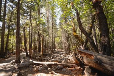 Keywords: woods forest trees woodland nature foliage leaves green greenery scenery summer outdoors path pathway rural environment
